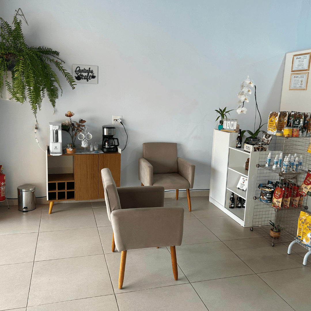 Nosso espaço é limpo, organizado e climatizado, garantindo conforto para os pets em todas as etapas do atendimento. Contamos com áreas específicas para recepção, espera, banho, secagem e tosa, projetadas para evitar aglomerações e reduzir o estresse dos animais.